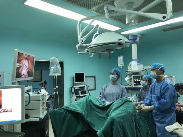 妇产科副主任栾梅及团队为邹昱(化名)做腹腔镜手术