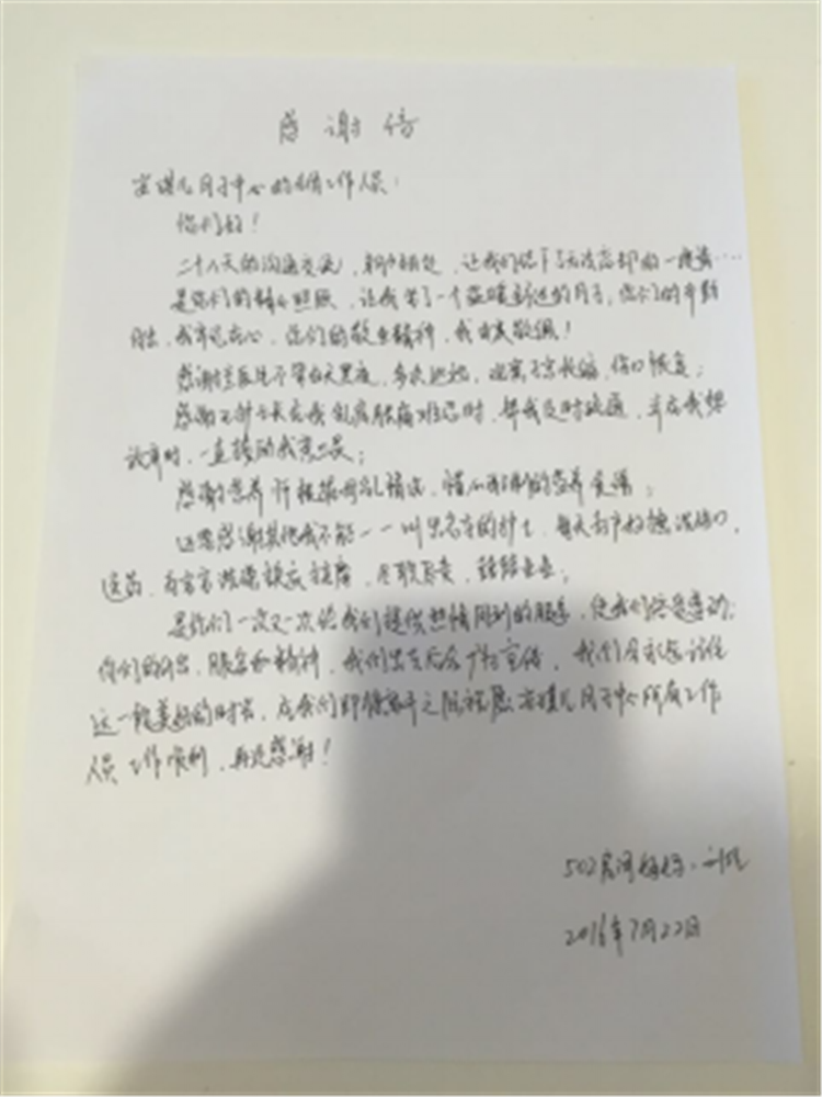 (月子中心妈妈刘佳7月24日出院时,为月子中心医护人员送来了一面锦旗)