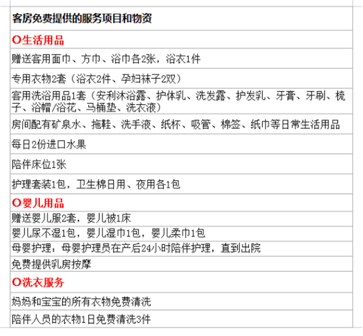 尿不湿够不够?宝宝的衣服如果不能及时洗,换不换得过来?入住前,文嘉一家人还为这些问题烦恼。入住的第一天,文嘉和家人发现自己的担心多余了。在安琪儿月子房里,妈妈和宝宝的专用衣物,专用毛巾、方巾、浴巾,沐浴露、护体乳等洗浴用品,月子鞋、帽、哺乳衣、储奶袋、收腹带等日常用品,妈妈专用护理用品全都配备,跟星级酒店一样,拎包即可入住。