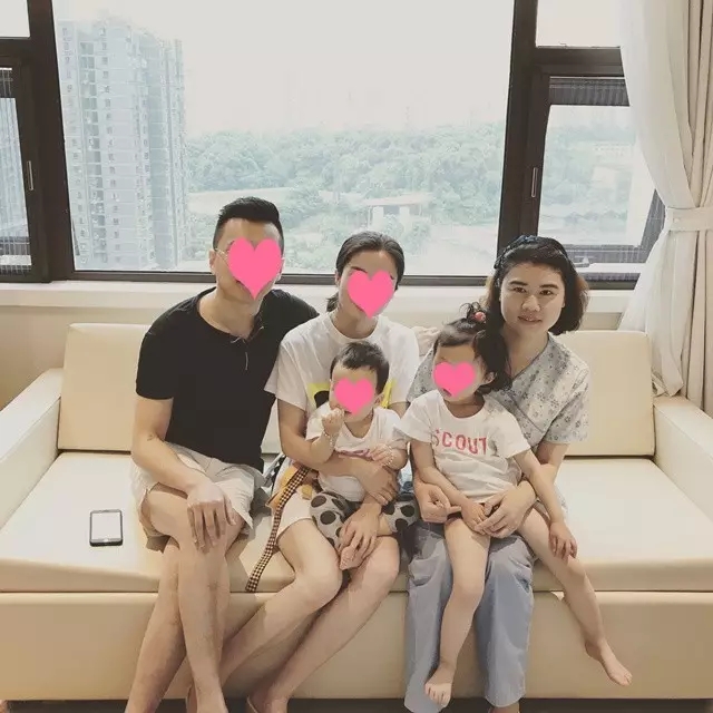 林如一家与刘丽均护士长合影(三个小宝宝都由刘丽均接生)