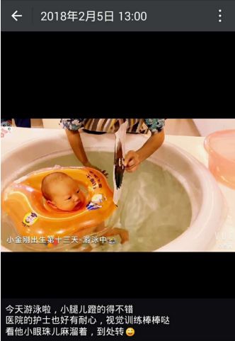●小金刚的舒适生活:每天9点多,安琪儿月子中心都有专人来接小金刚到9楼洗澡,并进行抚触按摩、游泳练习,让小金刚体会到运动的快乐呢!